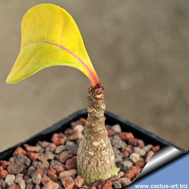 Meraviglia caudiciforme che ricorda un baobab in miniatura, endemica della costa di Dhofar in Oman e delle montagne dello Yemen, intorno ai 960 m. Le grandi foglie lucide cadono in autunno; fiori rosa compaiono a inizio estate, prima della fogliazione.