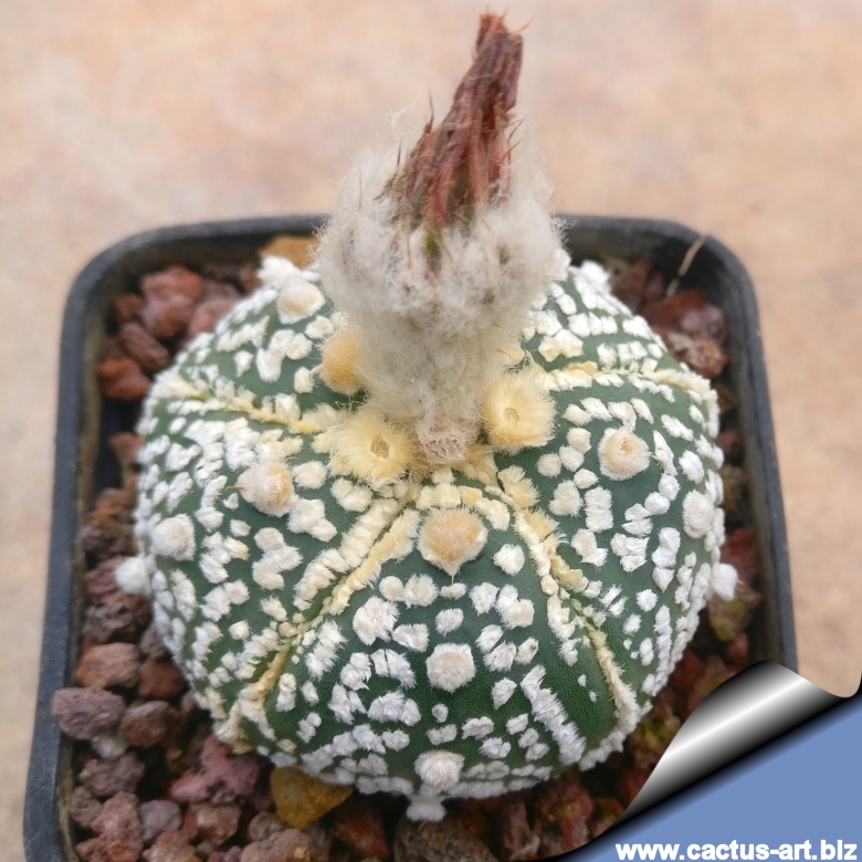 Forma speciale con sole 5 coste, caratteristica rara in Astrophytum asterias e molto ricercata dai collezionisti. Gli esemplari selezionati presentano anche grandi macchie tipiche del cultivar SUPERKABUTO. Ogni esemplare è diverso dall'altro.