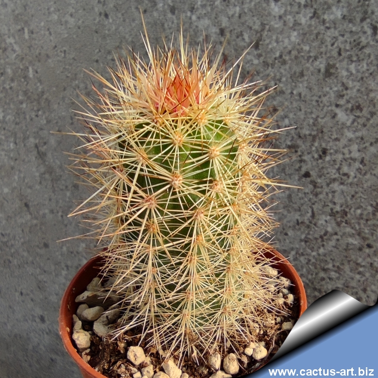 Pianta estremamente spinosa che accestisce formando cuscini fino a 80 cm. Le spine, affilate come pugnali, sono rosa, arancio o rosse da giovani e diventano grigio-bianche o gialle con apici bruni. I fiori rosa sono straordinari.