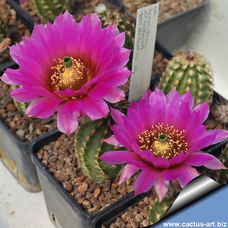 Fusti tozzi con tendenza a formare piccoli gruppi con spine variabili nel colore. Fiori attraenti di tonalità magenta. Pianta resistente al freddo (winterhart), tollera gelate leggere se coltivata in posizione asciutta e ben drenata.