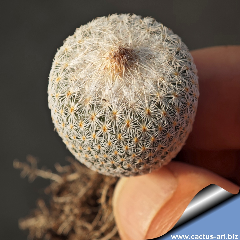 Cactus globoso in miniatura con spine bianco-grigiastre innocue, pettinate e aderenti ai lati del fusto. Fiori rosa delicati seguiti da frutti rossi decorativi.