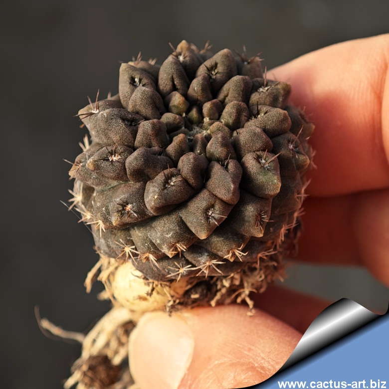 Piccola specie a crescita ridotta, con fusto basso, quasi privo di spine o con spine molto brevi, di colore dal viola scuro al quasi nero. Solitaria, appiattita e per lo più sotterranea, con radice tuberosa.