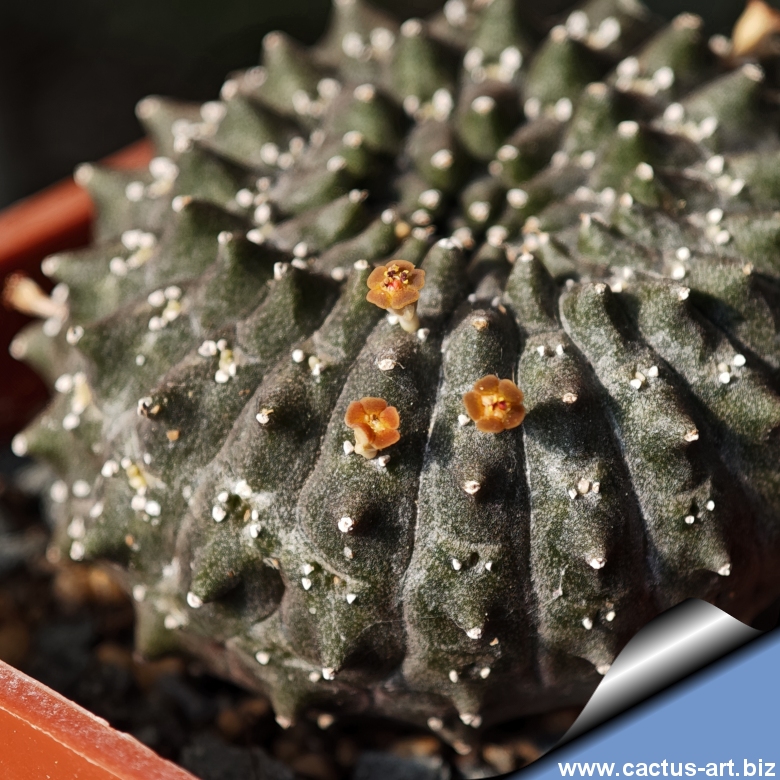 # # # PIANTA SPECIALE # # # (Esemplare selezionato) Esemplare eccezionale per la sua colorazione: epidermide prossima al nero, velata da una patina grigio scura. Tra decine di esemplari, questo è l’unico a presentare questa straordinaria colorazione.