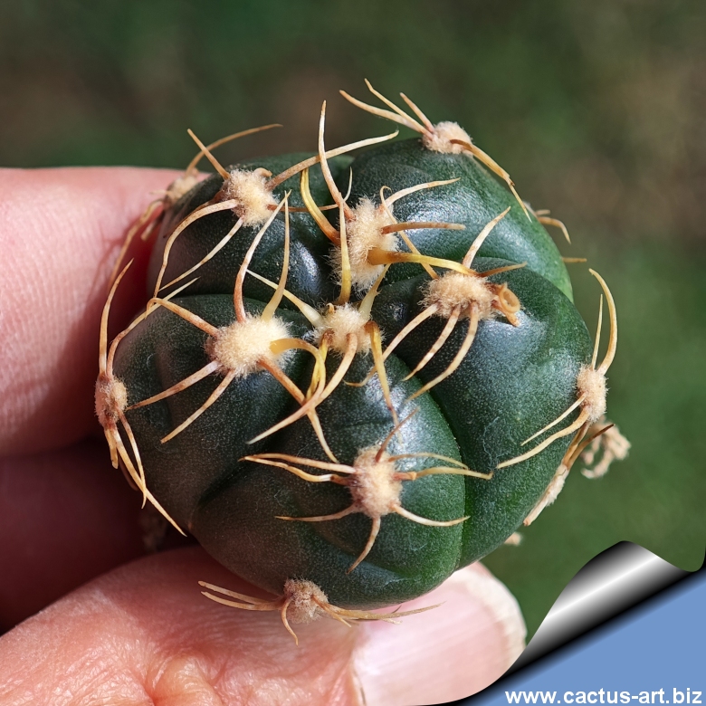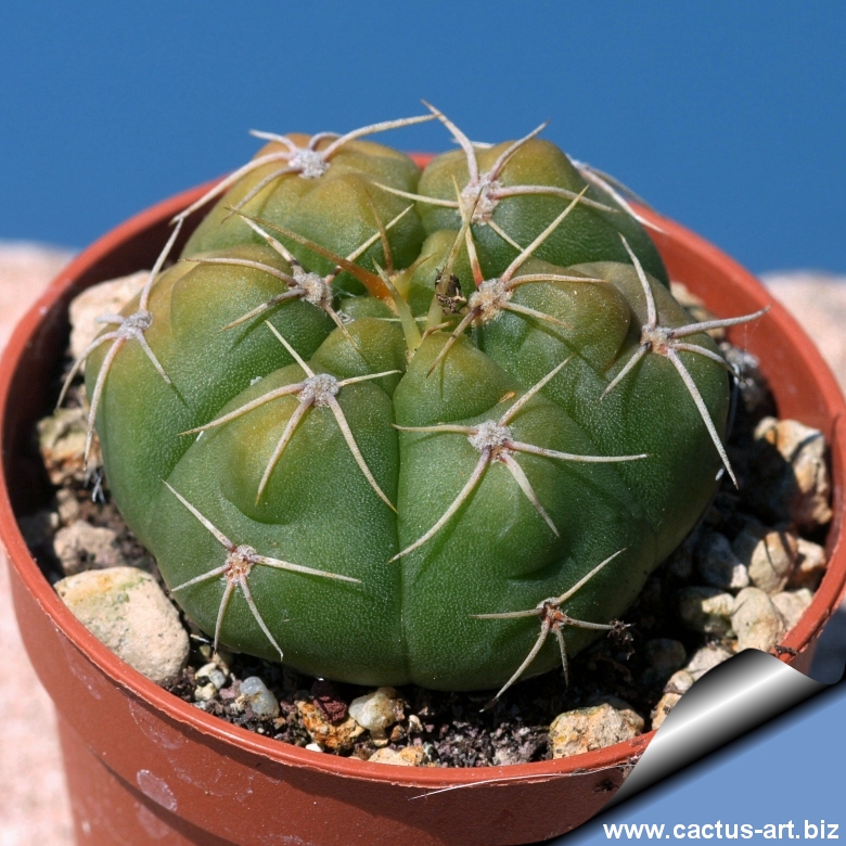 Cactus globoso e epidermide verde scuro, con spine brevi e arcuate, che richiamano le zampe di un ragno. 'JAN SUBA' è celebre per i suoi fiori vistosi, dai toni vivaci di rosa magenta o rosso acceso, di grande impatto ornamentale.
