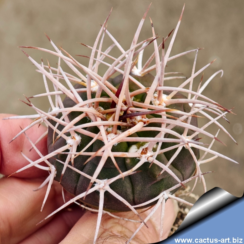 Fusto appiattito color marrone, con spine corte e robuste. I fiori bianchi creano un elegante contrasto con il colore scuro del corpo.