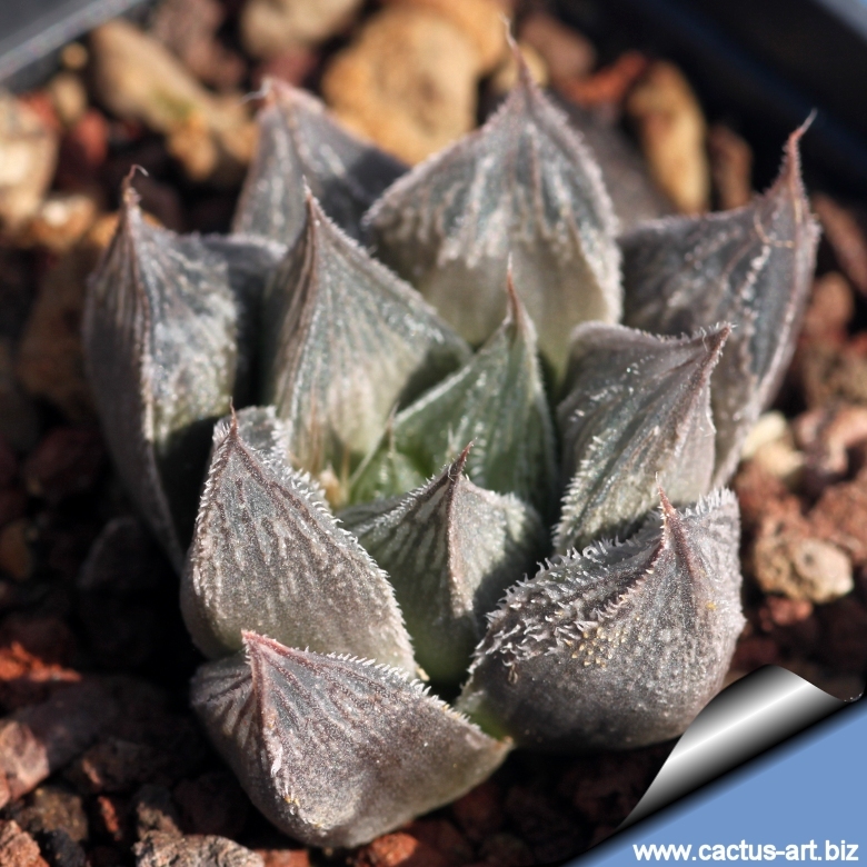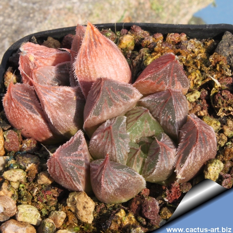 Compatta e pelosa, questa Haworthia cooperi v. venusta x cv. CHOCOLATE sfoggia un affascinante colore cioccolato, che si accentua durante l'inverno.