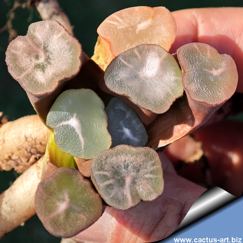 Clone eccezionale: grandi finestre trasparenti verde smeraldo o acquamarina, ornate da disegni color panna. In piena luce esprime tonalità rosa, viola e ambra.