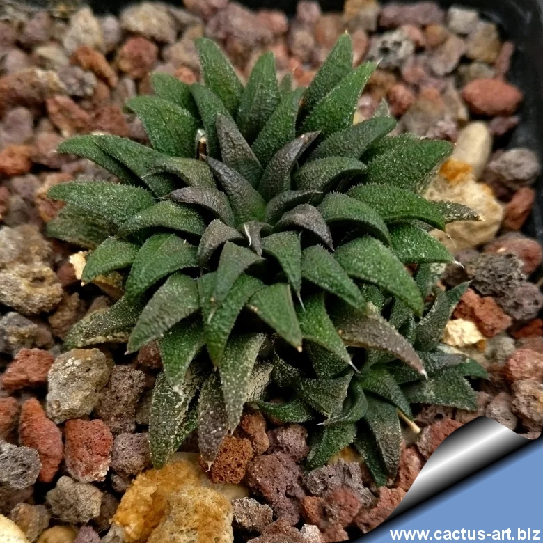 Miniatura Perfetta. H. parksiana è la più minuscola e scura delle Haworthia, forma rosette nere quasi perfette con foglie appuntite rivolte all'indietro. La sua crescita lenta e la rarità ne fanno un vero tesoro botanico, tanto piccolo quanto prezioso.