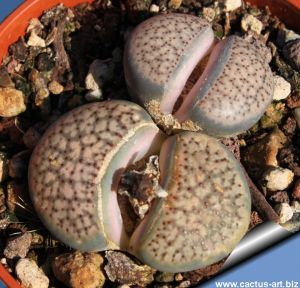Lithops karasmontana 'lateritia reticulata' is a very pretty species with a noticeable reddish-brown network on the pink-grey top. BEAUTIFUL.