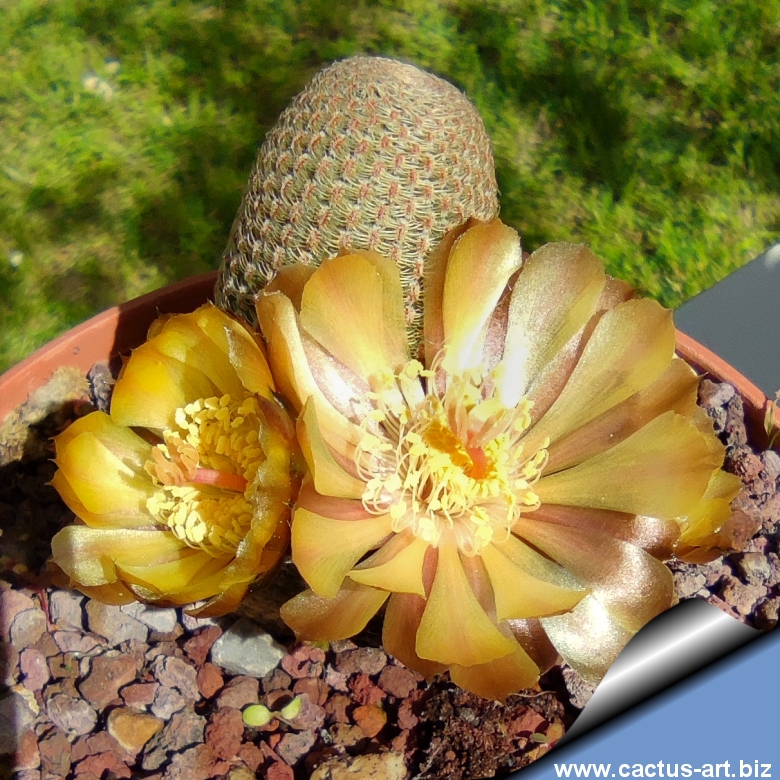 Cultivation: Very slow growing. The Lobivia famatimensis have a thick taproot and are susceptible to over-watering. Sometimes they are grafted to avoid root rot problems. Suited for sunny-bright exposure; they can tolerate light shade. They like warmth (recommended minimum winter temperature 5° C). But plant kept perfectly dry can easily survive in winter night temperatures below 0° C (In our greenhouse there was no damage at -10° C for a few hours in the winter of 2002-2003 ) They prefer airy exposures. Water regularly in summer, but do not overwater, it prefer a completely dry place during winter. Suited for sunny-brightly exposure; can tolerate light shade. Propagation: Seeds or graft. Seedlings of the var. bonnieae grow faster than other Lobivia famatimensis. Seeds can be sown in the spring or summer. The seedlings should not be disturbed until they are well rooted, after which they can be planted separately in small pots. | |