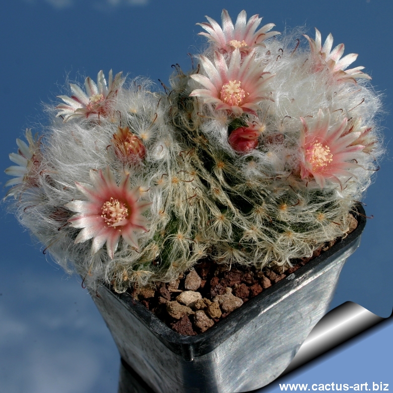 M. bocasana var multilanata ha fusti di forma sferica quasi interamentre nascosti dai densi peli lanosi bianchi e dalle corte spine centrali uncinate. Fiori sono da giallo a rosa, grandi e molto numerosi.