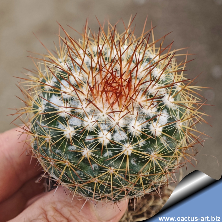 Areole lanose, ascelle colme di fitta lana bianca e fitte setole bianche allungate. Spine imponenti, color giallo-arancio fino al rosso. Pianta poco diffusa in coltivazione, di grande fascino.