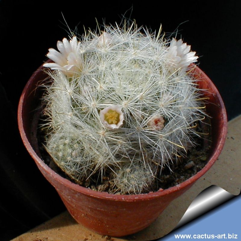 Splendida pianta, che forma cuscini bianchi fodrati di morbide spine, la fioritura dura più di due mesi ed è seguita dalla produzione di frutti molto ornamentali.