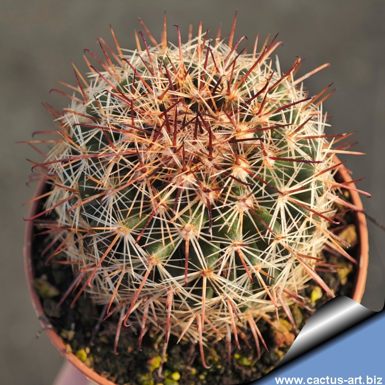 Bella pianta con spine molto decorative: radiali bianche e centrali uncinate rosso-marrone. Cresce su rocce ripide in Messico, fioritura da aprile a luglio in rosa-magenta. Predilige esposizione soleggiata e terreno ben drenante.