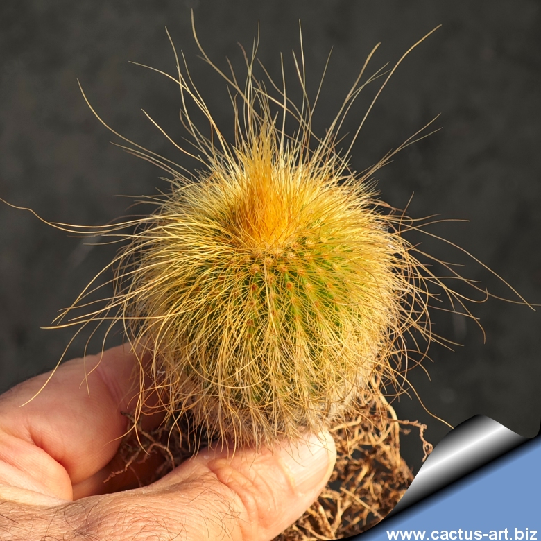 Cactus molto amato, avvolto da fitte spine dorate, lunghe, sottili e inoffensive. Fiorisce con corolle giallo sericee, i cui petali rivelano una splendida riflessione luminosa soltanto quando la pianta è matura.