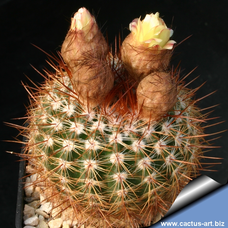 Questo è un cactus di facile coltivazione con bellissime spine di colore rossiccio o aranciato dai riflessi ramati. I fiori sono giallo-limone, fino a 5 cm in diametro con stigma rosso porpora.