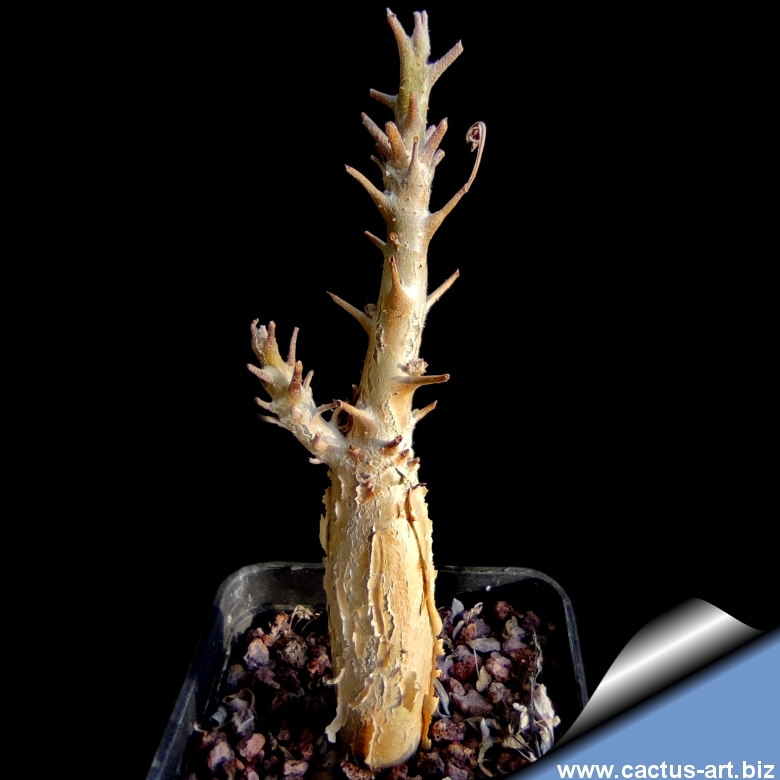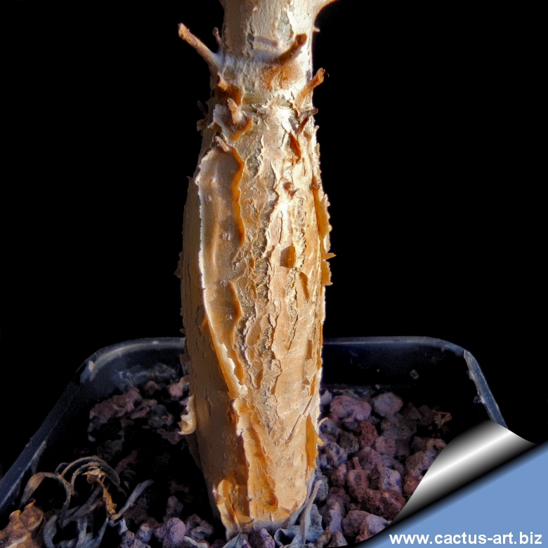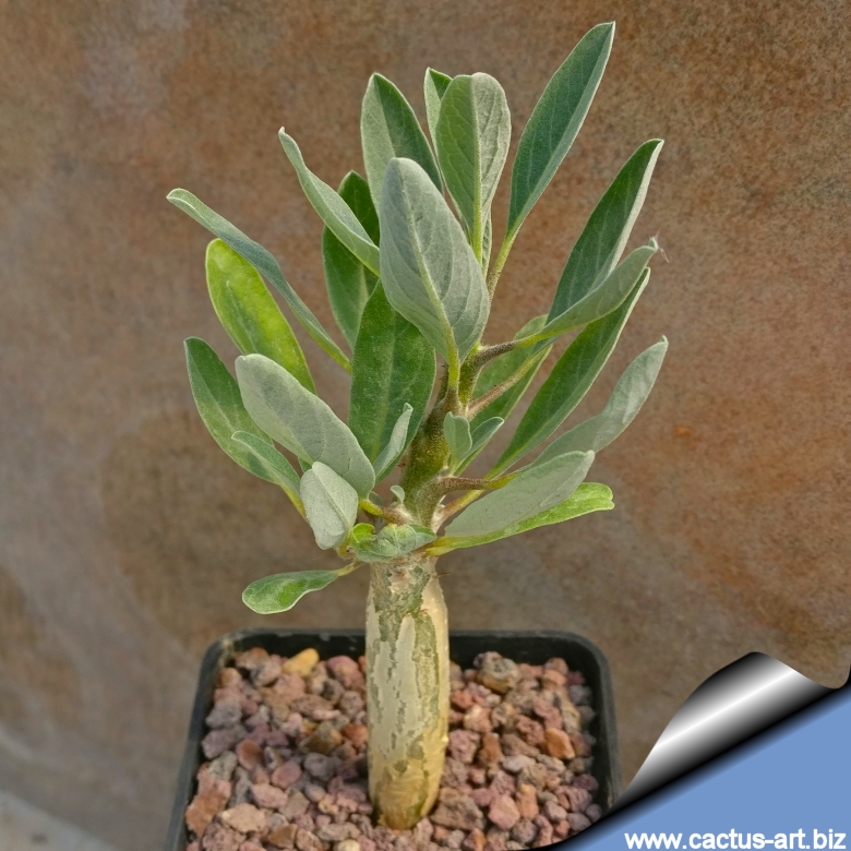 Pachicaule con tronco spesso e lucido, coronato da rami eretti e rigidi. Su di essi crescono spine e foglie grigio-verdi disposte a ciuffo su brevi rametti. Talvolta le foglie sono ricoperte da una peluria bianca e lanosa.