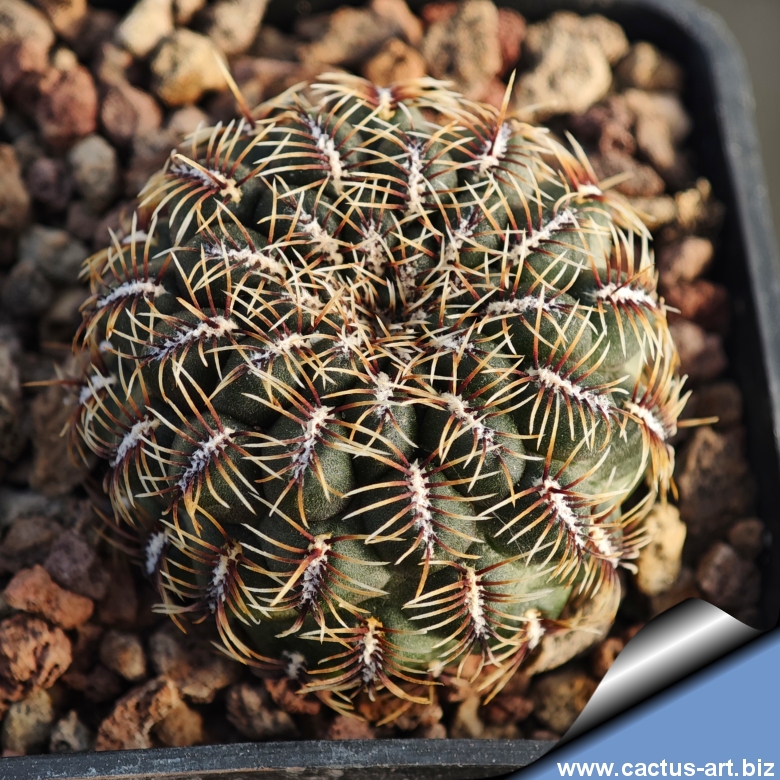 Un gioiello delle Ande! Areole bianche allungate e spine a spina di pesce che sembrano ricamate. In fioritura, esplode in fiori che presentano una gamma cromatica dal porpora al rosso con un cuore bianco. Specie molto decorativa, apprezzata per la struttura geometrica e la fioritura vivace.