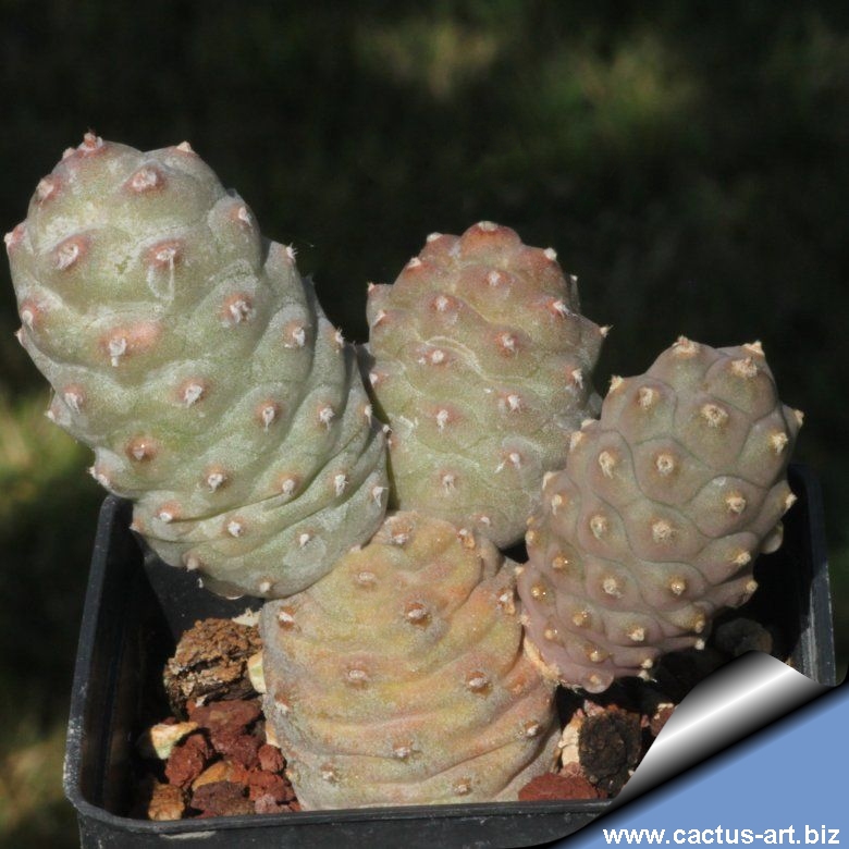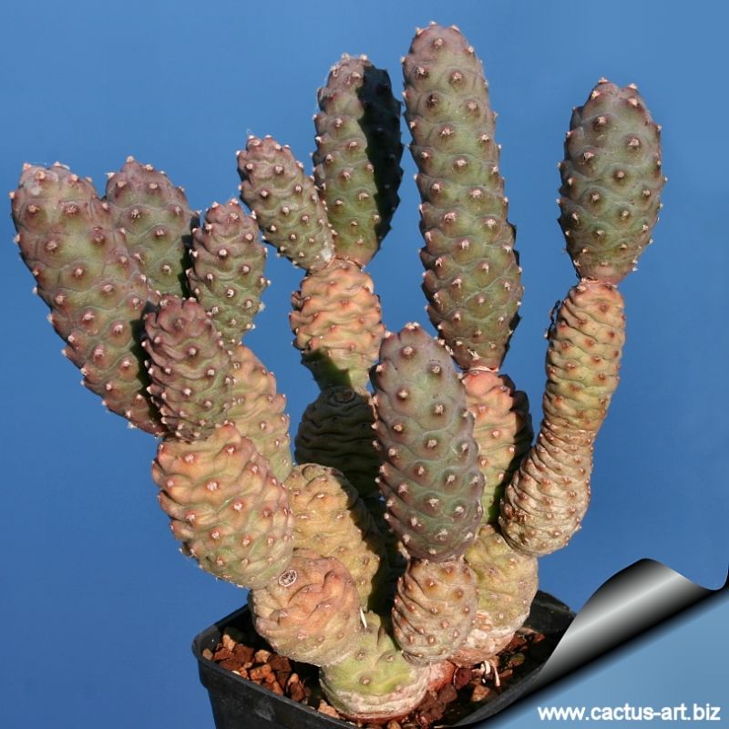 Pianta senza spine né glochidi, quindi assolutamente sicura da toccare. Produce attraenti gruppi di cladodi ovoidi o leggermente allungati, risultando ideale anche per chi evita le specie spinose.