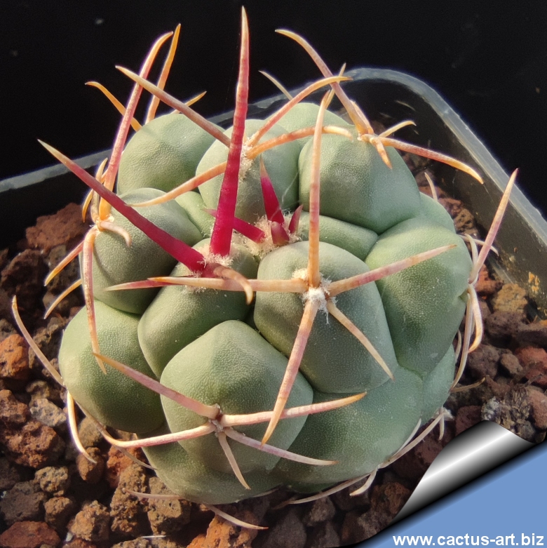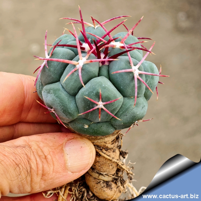 Fusti appiattiti, grigio-verdi o bluastri, con caratteristici tubercoli ampi, poligonali e arrotondati (esagonali o pentagonali alla base). Fiori bianco-argentei o rosati.