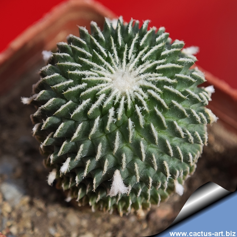 (Sinonimo Pelecyphora pseudopectinata f. inermis) Cultivar nana a portamento globoso e crescita lenta. Caratterizzata da piccoli tubercoli a forma di ascia disposti con simmetria e completa assenza di spine, è apprezzata per rarità ed estetica, molto ambita in collezioni specializzate.