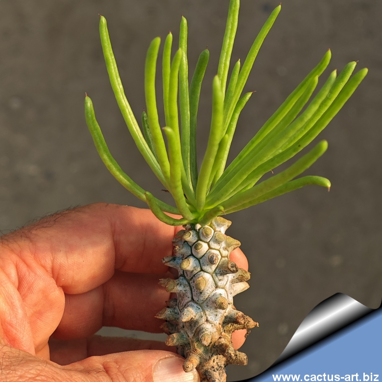 Tylecodon wallichii è un piccolo arbusto succulento con fusti spessi, nodosi e tubercolati, e foglie succulente addensate alle estremità dei rami. Le foglie compaiono in inverno, cadono in estate—assenti durante la fioritura—e si staccano in modo pulito.