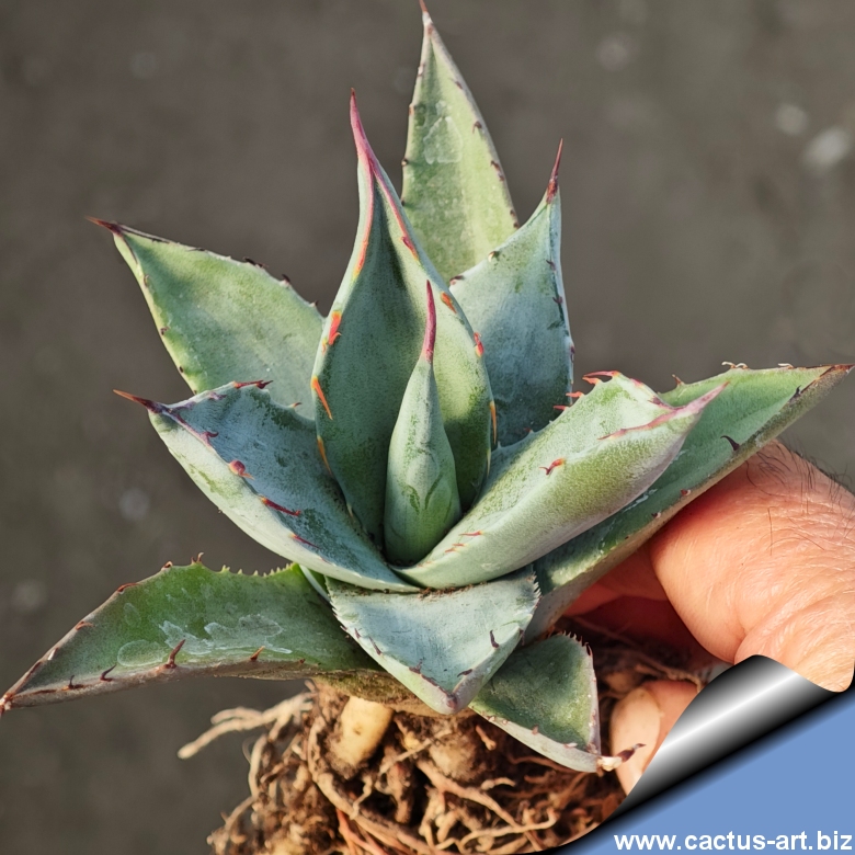 Medium-sized agave forming a solitary, many-leaved rosette. Leaves are thick, broadly lanceolate to ovate, green to bluish. Margins bear horny teeth spaced 1–3 cm apart; terminal spine conical, strong, 2.5–4.5 cm, brown to greyish.