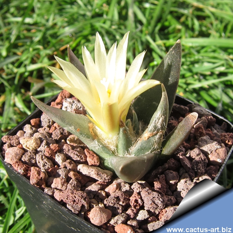 It blooms already at only 3-4 cm in diameter. Long, pointed and vertical tubercles. Yellow flower.