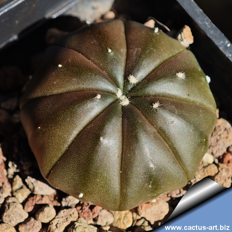 ‘Brown Star’ is an hybrid bred from A. asterias and A. myriostigma. It displays striking dark epidermis, ranging from brown to nearly black. Color intensity varies with light and season: brownish-green in winter, deep brown to black in summer, especially under strong sunlight.