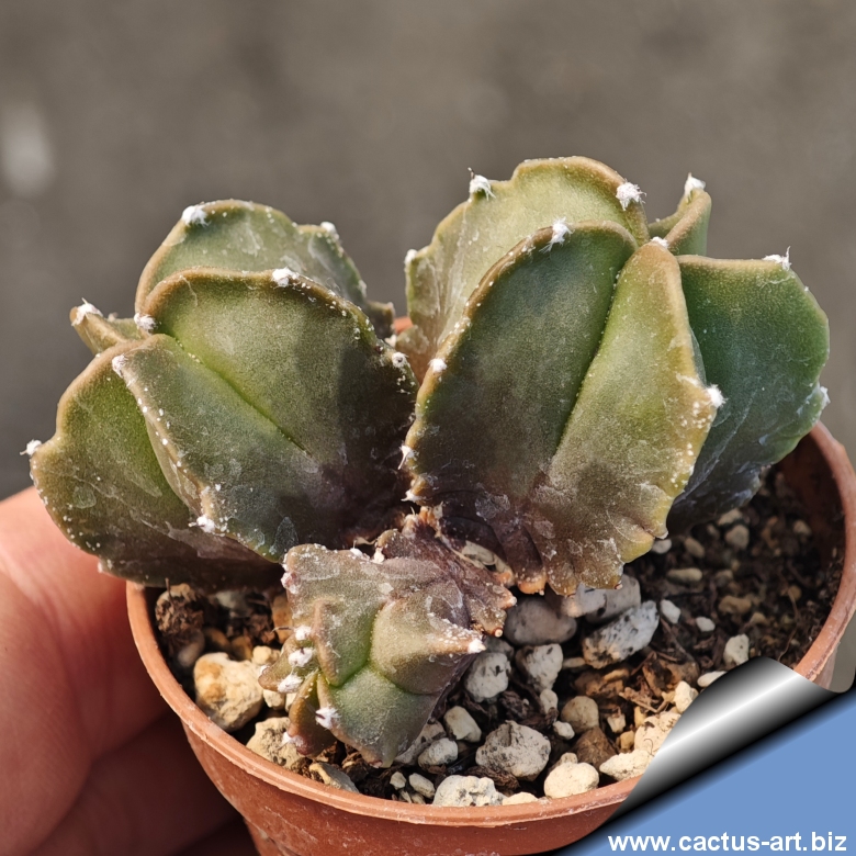 A bizarre variety with a branching habit, producing new shoots from the areoles and gradually forming small clusters over time. The nudum form features a uniform green surface, lacking (or nearly lacking) the typical white speckles. Thanks to natural variation, each specimen is truly one of a kind.