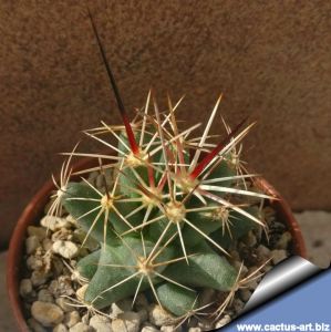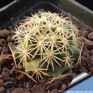 Variety with a round, dark green body and stiff, pectinate spines. It produces large yellow flowers with red anthers. A truly captivating plant.