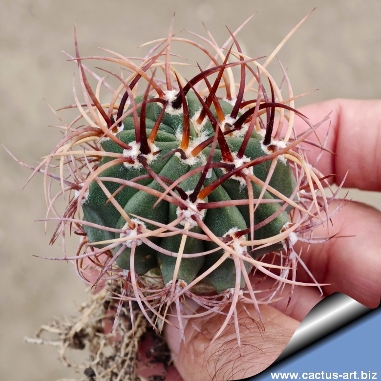 | The spines shape and colour of this species is variable. D. rhodacantha also changes considerably in the habit with age and the old specimen after many years start producing long white bristle. Cultivation: D. rhodacantha is very slow growing cactus but requires no special condition in cultivation, need full sun and a very draining soil. | |