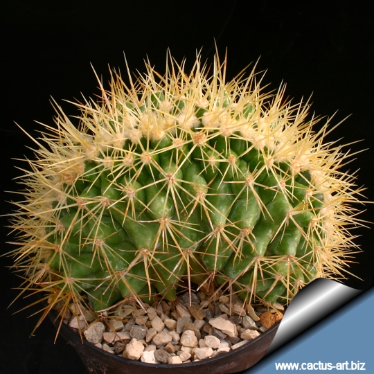 A crested Echinocactus grusonii (the famous “Mother-in-law’s Cushion”) with long, rigid, golden spines. The body forms fan-shaped or brain-like crests, and no two specimens are ever perfectly alike.