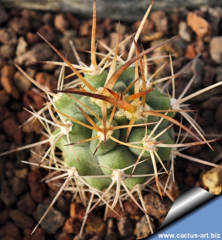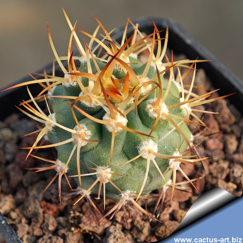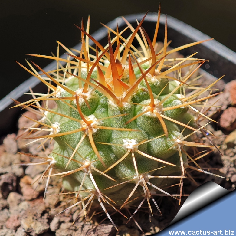 The "aurata" is the largest of the Eriosyce, a very spiny barrel cactus with dimensions similar to the Echinocactus grusoni! Strong golden, amber or brown spines curved upwards. This fascinating plant is known by the Chileans with the name of sandillon.