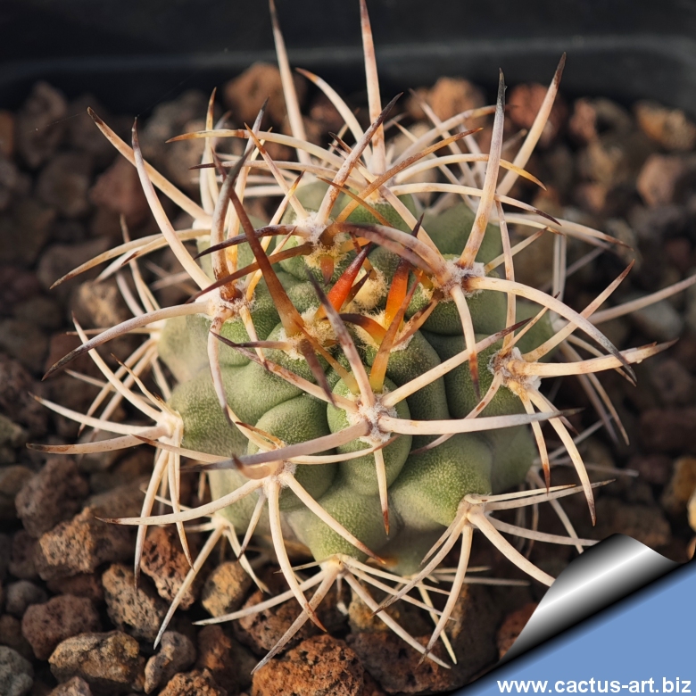 The "aurata" is the largest of the Eriosyce, a very spiny barrel cactus with dimensions similar to the Echinocactus grusoni! Strong golden, amber or brown spines curved upwards. This fascinating plant is known by the Chileans with the name of sandillon.