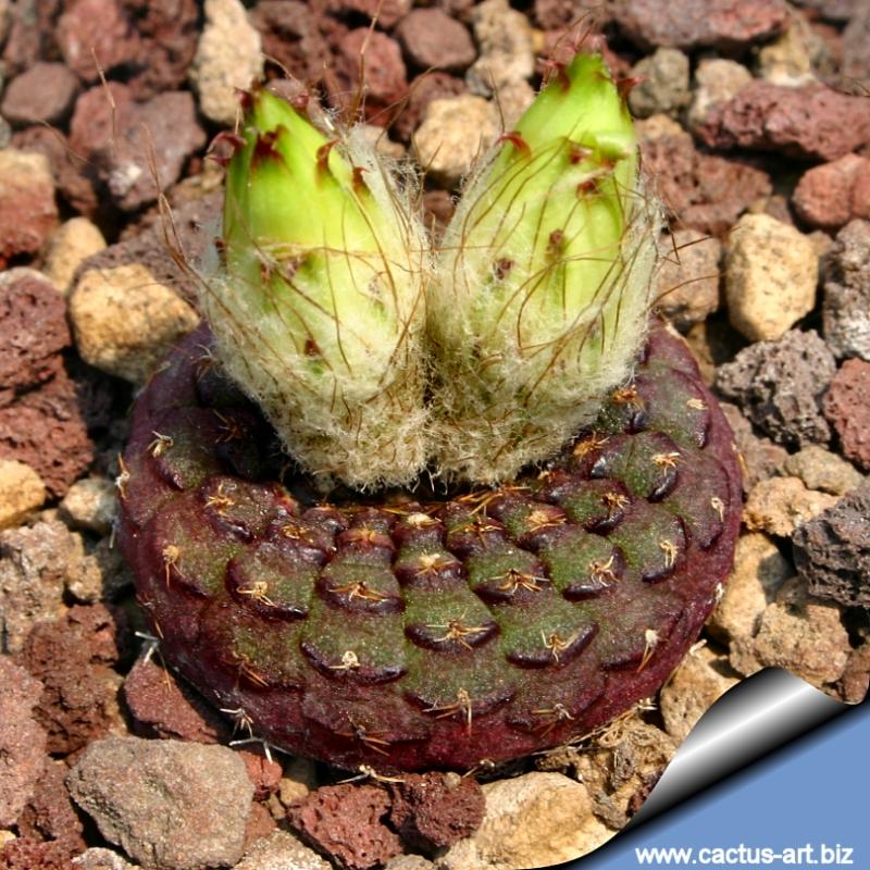 | Description: F. cataphracta is a very small depressed cactus that do usually not sprout in nature, but in culture with age begins to clump around the base and grow oddly. It is undoubtedly one of the most fascinating cacti. Crests of this species are also known and very beautiful. | |