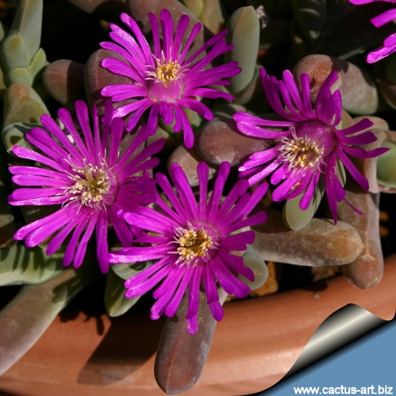 Distinctive grey-green, slender leaves resembling tiny sharks. Produces a profusion of long-lasting purple flowers.