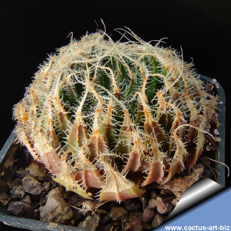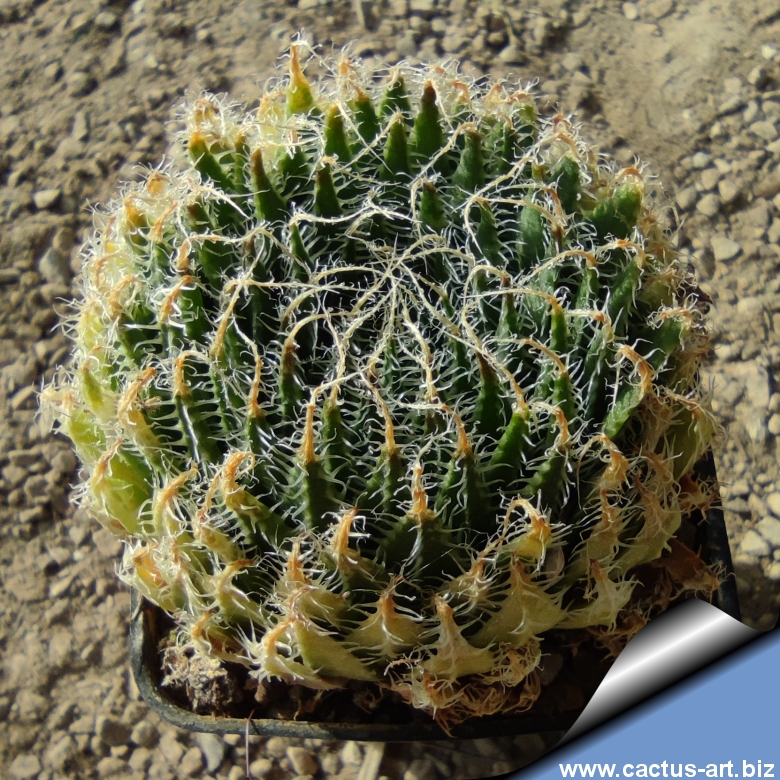 Leaves ending in a sharp tip, with dense, softr on touch, white transparent bristles at the margins and keels. It resembles a small ball of fur, especially in the dry state.