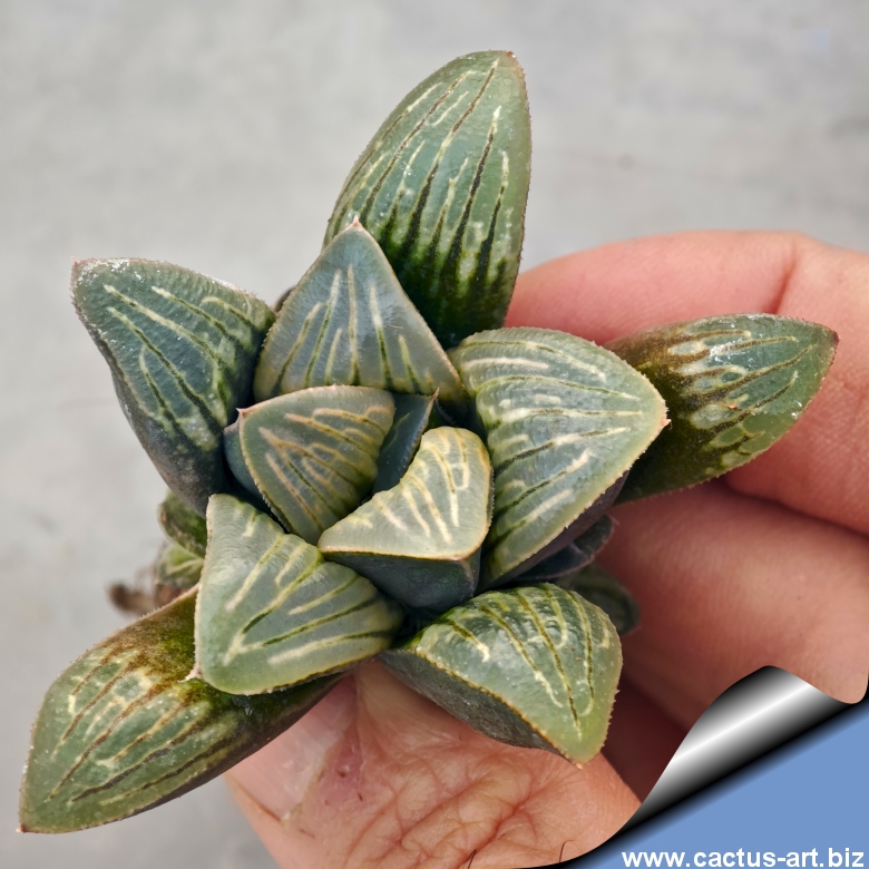 A beautiful Japanese cultivar with fleshy, translucent leaves whose color shifts with the seasons and light exposure—from emerald green to olive-green—accented by amber or brownish hues and elegant pale veining.