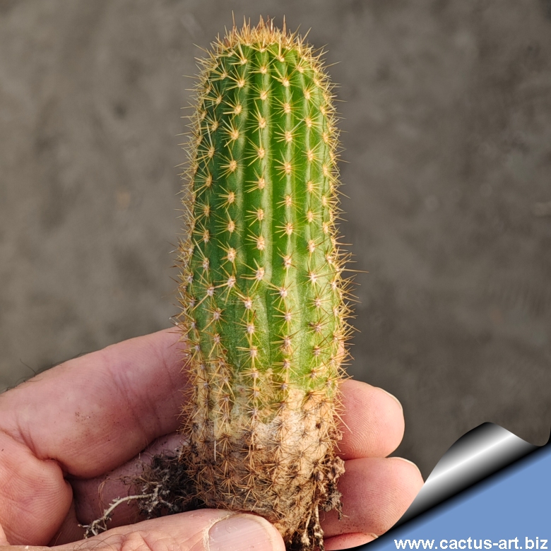 This is a rare intergeneric hybrid between Helianthocereus grandiflorus (Trichocereus grandiflorus) and Morawetzia doelziana (Oreocereus doelzianus). It has glorious crimson flowers at top of thin columnar stems.