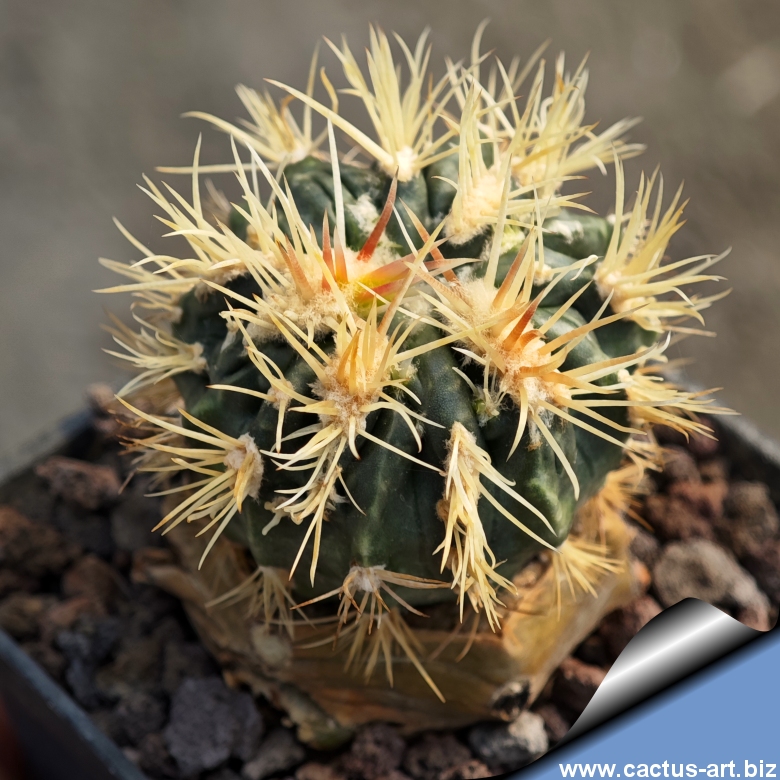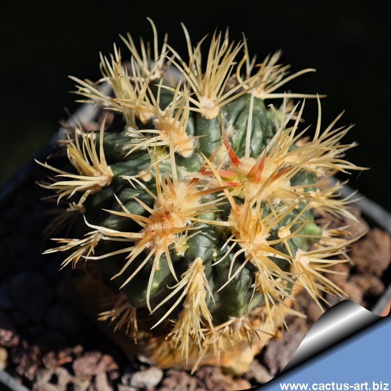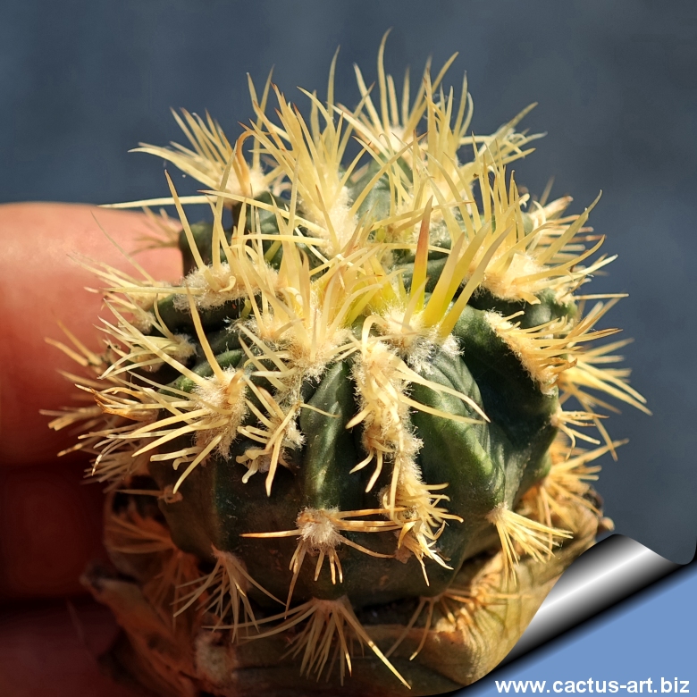 Unique Japanese cultivar showing irregular secondary ribs interspersed between primary ones, all featuring long, fuzzy areoles with neatly arranged comb spines. While blooming is rare, the distinctive monstrous trait remains stable in seed-grown offspring.