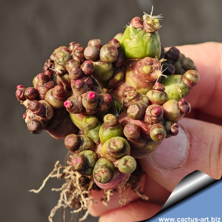 Among the most attractive clones of the “Fred” variety, it features many small heads—unlike the typical form. Smooth, spineless, glossy, and fleshy stems coalesce into dramatic, visually striking mounds.