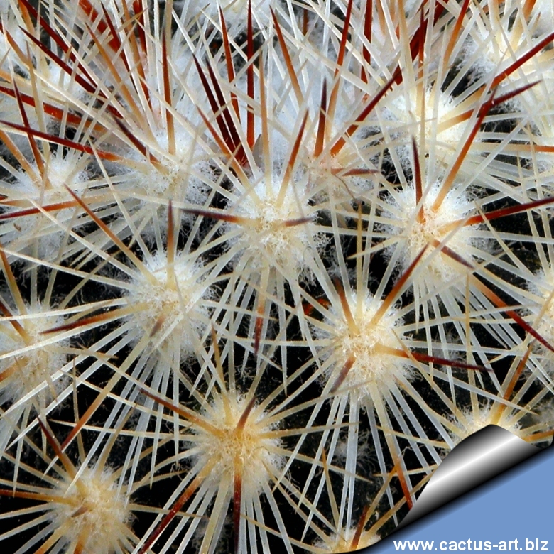 White areoles bear dense, rigid, straight spines in creamy white to ochre tones, with darker tips. Small flowers, usually yellow, appear arranged in a crown-like ring near the apex.