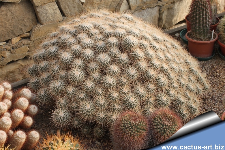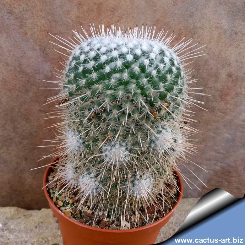 This Mammillaria becomes increasingly beautiful with age, gradually turning into a living sculpture. It clusters vigorously and produces more and more white wool, eventually forming large clumps reaching 30–90 cm in diameter.