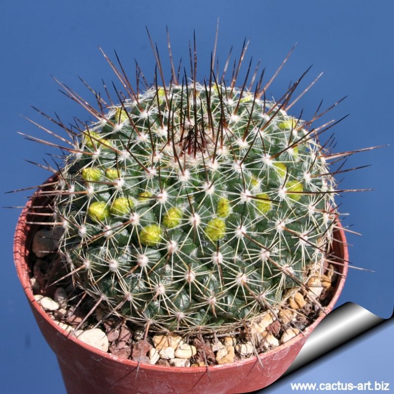 After several years  the  plants  branches from the base sometime forming very large clumps up to 1 m wide (space permitting!) but patience is required as it is also a fairly slow grower. Central spines straight, golden brown, reddish to almost black, sometimes absent. Flowers greenish-yellow.
