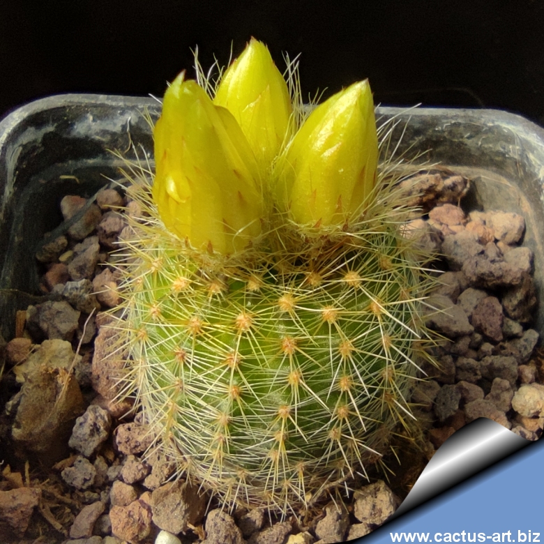 Notocactus rechensis is a lovely dwarf species that branches strongly at the base and can form large clusters. The yellow flowers reach 3 centimeters in diameter.