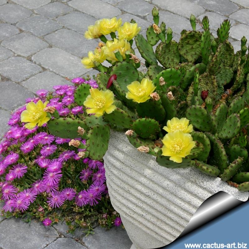 Notes: Though technically evergreen , the plants become quite deflated and scraggly in appearance during winter. However, the pads green up and plump up quickly in spring.