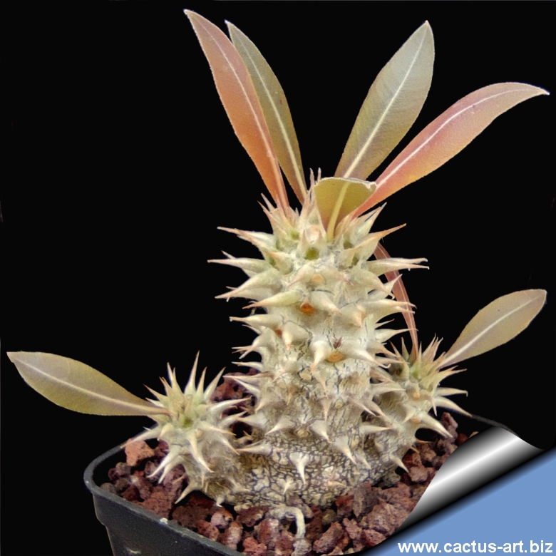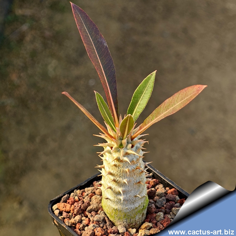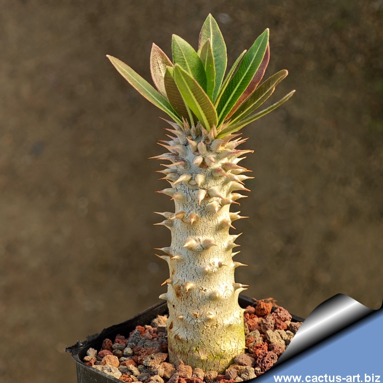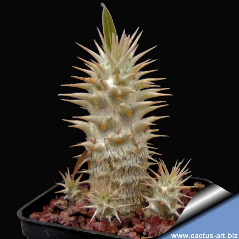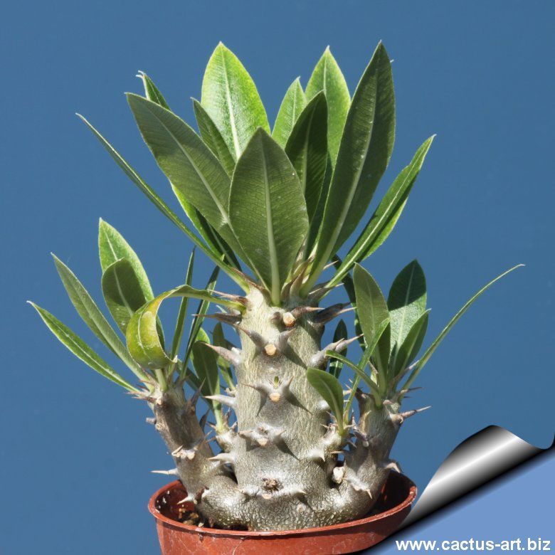 Pachypodium horombense is a succulent shrublet about 1.5 m high with a plump, bottle-shaped, main stem surmounted by a number of short fat spines. Produces Chrome-yellow flowers during the warm months of the year.