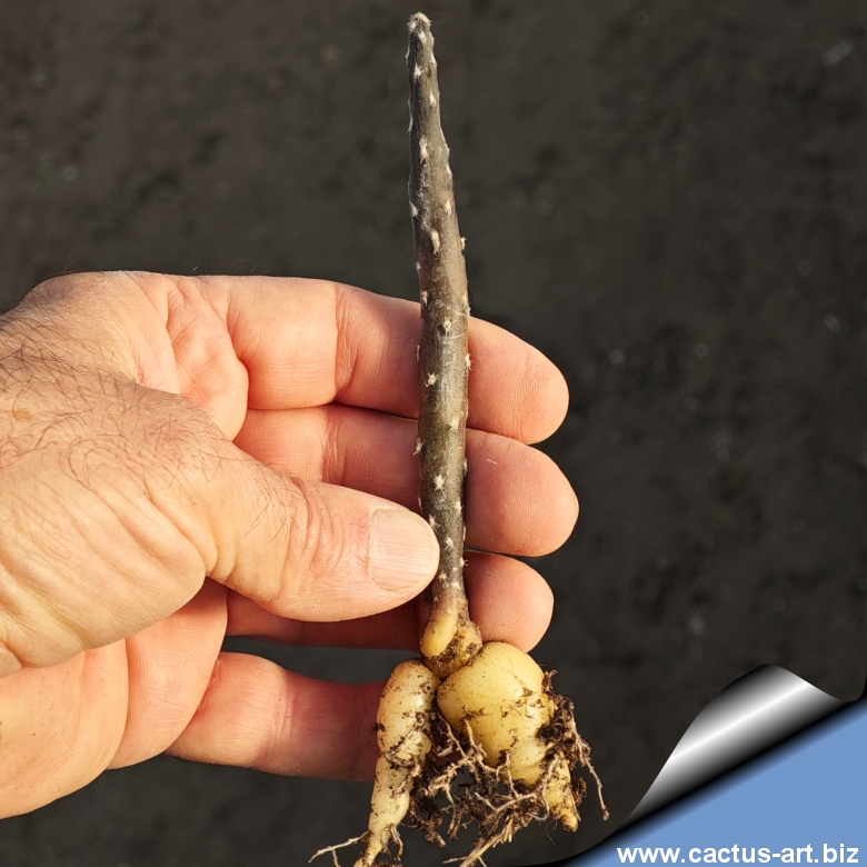 A geophytic cactus with powerful tuberous roots and numerous cylindrical, deciduous branches. Its architecture is truly surprising and visually striking.