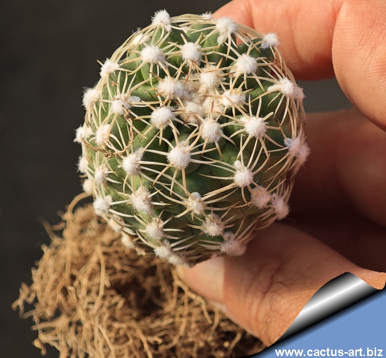 Slerocactus mesae-verdae is a most beautiful cactus but rarely seen in cultivation. It is quite difficult to grow on its own roots, hence for ease of cultivation it is grafted on a very cold resistant Echinocereus. Frost hardy down to -12° (or less).